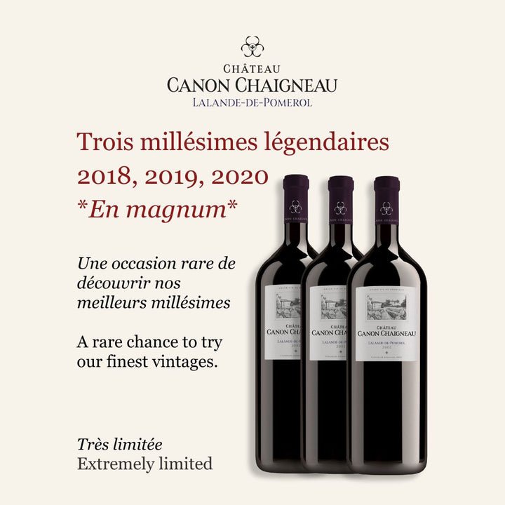 Composed of approximately 95% Merlot, balanced with Cabernet Franc and Pressac, the wines express the complexities & finesse of our great terroir and winemaking heritage. It embodies the refinement & elegance of Château Canon Chaigneau with layers of complexity, true to our long- standing 2000 year legacy.